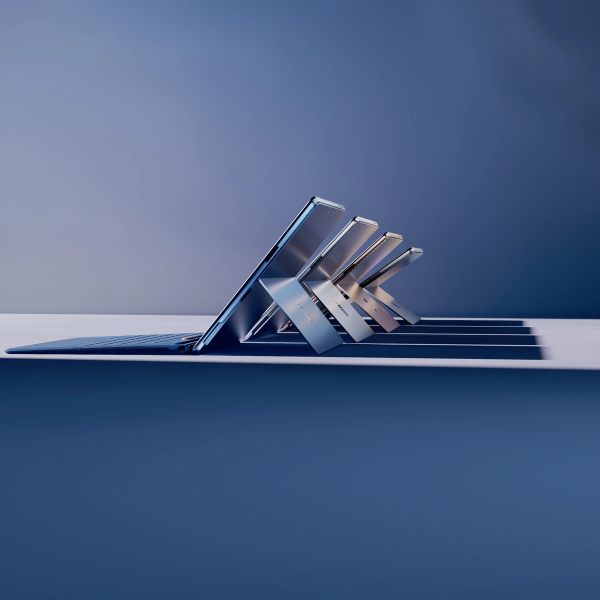 Collaborating with Koto, Ditroit, and Microsoft, the exploration began on how this theme could be applied to device renders. Inspired by James Turrell’s installations, which infuse spaces with ethereal, colored light, an emotive visual language was developed to bring vibrant life to these sumptuous renders. In this narrative, Copilot, the Microsoft AI, becomes the embodiment of light itself. Its power touches everything, surrounding, penetrating, and binding the galaxy together.